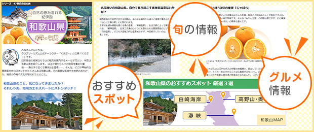 「47都道府県の旅」は、観光連盟や観光協会など現地の観光PRを担う皆さま、当社のツアー企画担当者など、旅のプロが各都道府県の魅力を記事形式でご紹介するメールマガジンです。ホームページや当社の情報発信サイト「クラブログ」などとも連動し、旅行情報誌では伝えきれない旅の魅力・現地の情報をご紹介します。
