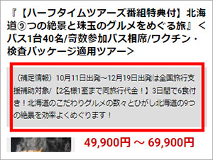 ご予約したツアーが全国旅行支援の対象かどうかは、ツアータイトルの下の補足情報に記載がございます。