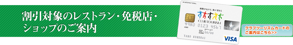 各空港の提携店にてクラブツーリズムカードのご提示、またはご利用でご飲食代金のお支払いが10%割引になります。また、関西空港では出国後エリアの提携免税店でのお買い物が5%割引になります。