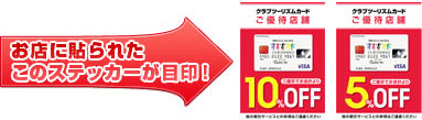 10%off、5%offのステッカーを目印に是非ご利用ください。