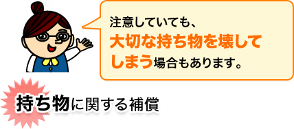 - (※4)携行品1個、1組または1対あたり10万円(乗車券等は合計5万円)がお支払いの限度となります。