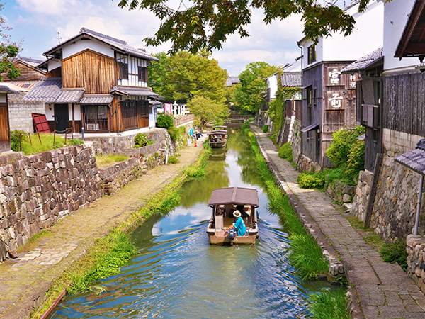 戦後の陸上交通の発展によって、八幡堀は一時廃れてしまいましたが、近年になって整備され、船着き場などが復元されました。堀に沿って白壁の土蔵や旧家が立ち並び、華やかだった当時の様子が伺えます。舟に揺られながら、四季折々の美しい自然や昔ながらの町並みを楽しんでみませんか。