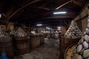 日本各地で様々な種類の味噌がありますが、愛知ではチョコレートのような黒色の「八丁味噌」が定番。徳川家康生誕の城である岡崎城から八丁の距離(約870m)にあった八丁村(現・岡崎市八帖町)で、江戸時代に味噌作りが始まりました。