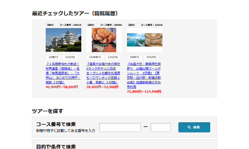 マイページでは最近チェックしたツアーが確認できるので、気になっていたけれどまだ予約していないツアーもすぐに確認できます。