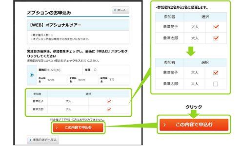 | 日帰りバス前席オプション無料 (指定コースのみ) |
