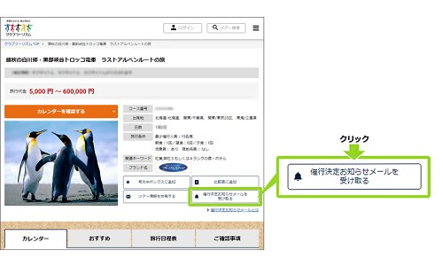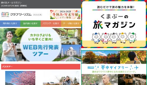 ツアー比較やクレジット決済、催行決定お知らせメール機能など会員だけの旅を深める便利な機能が満載!メルマガ登録いただいた方へは旬の旅情報をお届けします!