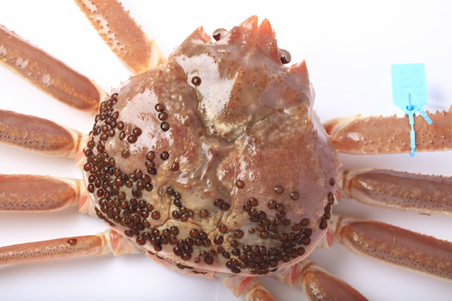 加賀の「加」と能登の「能」から名付けられた加能ガニ。青いタグがつけられたオスのズワイガニで、身がぎっしり詰まり、味わい深い濃厚なミソが特徴です。