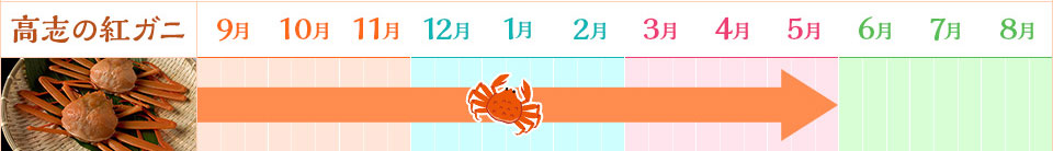 The peak season for delicious Takashi red crab is from Sep. to May..