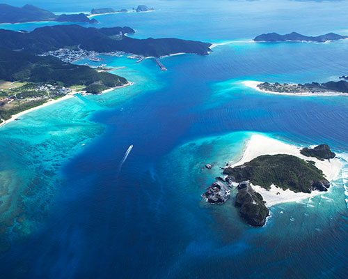 国内外から注目される透き通る美しさの“慶良間ブルー”の海に島々が点在する慶良間諸島。島内観光や島めぐりクルーズで絶景を堪能!