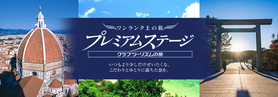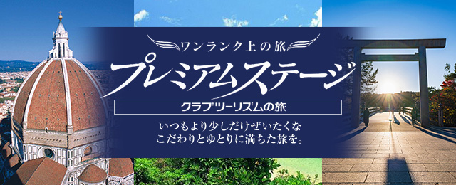 いつもより少しだけ高級な旅をしてみたい。そんなご要望におこたえするツアーをクラブツーリズムが提案します。質の高いご宿泊やお食事にゆとりの観光、おもてなしの旅をまごころ込めてお届けします。こだわりとゆとりに満ちたワンランク上の旅をご満喫ください。