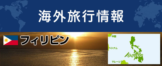 フィリピンに関する情報を紹介しています。時差や言語、月別の天気情報やお金(通貨・両替・チップ)の情報、電圧・プラグについてなどフィリピン情報満載。是非フィリピン旅行・ツアーのご参考に。