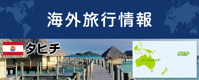 タヒチに関する情報を紹介しています。時差や言語、月別の天気情報やお金(通貨・両替・チップ)の情報、電圧・プラグについてなどタヒチ情報満載。是非タヒチ旅行・ツアーのご参考に。