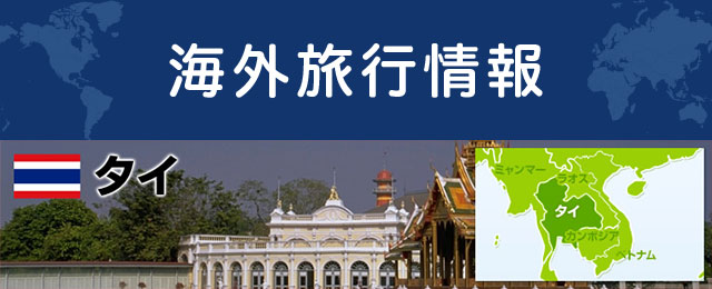 タイに関する情報を紹介しています。時差や言語、月別の天気情報やお金(通貨・両替・チップ)の情報、電圧・プラグについてなどタイ情報満載。是非タイ旅行・ツアーのご参考に。