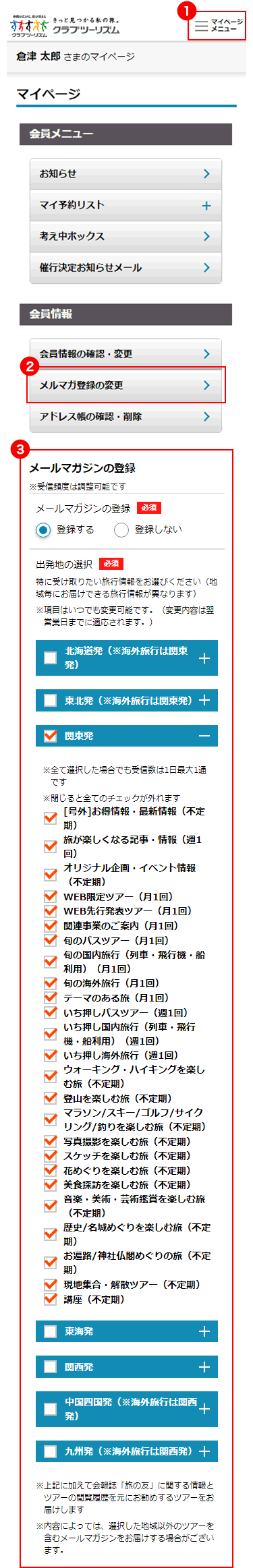 クラブツーリズムのメールマガジンは好きな内容を好きな頻度で受け取れるようになりました!
