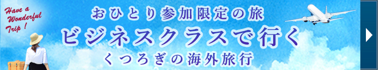 1人参加限定!クラブツーリズムの海外一人旅・ツアー特集!添乗員同行なのでおひとり参加でも安心です。いつでも好きな時に気軽にご参加いただけます。女性参加限定や少人数など多彩なプランをご用意。