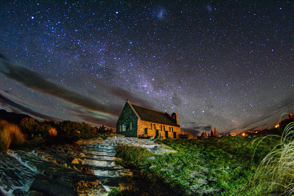 有名な「善き羊飼いの教会」から深い神秘さを引き出した、素晴らしい作品です。夜空の色合い、星の輝き、浮かび上がる手前のステップなど、難しい露出が綿密に計算され、教会にもこれ以上存在感を与えるとバランスが崩れる、限度ぎりぎりまで迫っている。技術の高さ、構図のセンスに成熟を感じます。次々と連想が浮かぶ、見飽きない作品です。