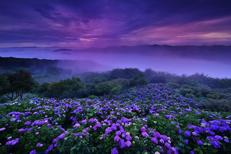 「紫陽花に添えて夕暮れ富士」(静岡県/富士宮市)