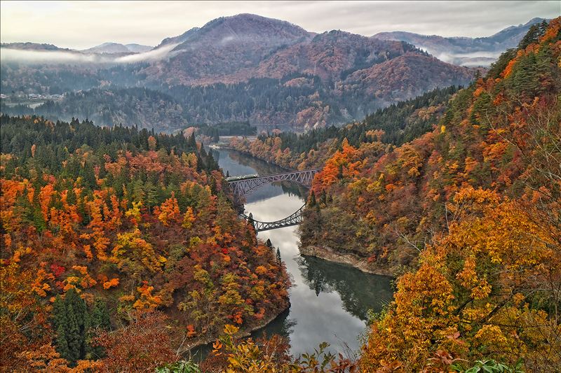 「秋の第一只見川橋梁」