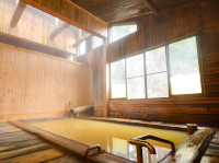地元民に人気の塩分たっぷり、湯量豊富な温泉。毎分800ℓもの大量の湯が湯船へと掛け流されている。「ナトリウム・カルシウム-塩化物泉」の湯は、入浴後も湯冷めしにくく保湿効果が高い。鉄分を含み、少し茶褐色に輝く。
