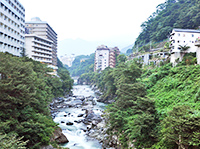 「みなかみ18湯(※)」のひとつで、水上温泉郷の中心。利根川沿いに続く、昭和の香り漂うレトロな温泉街も魅力。
