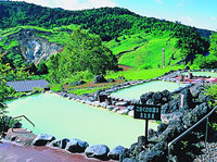 5つのタイプの泉質があり、色合いの違いから5色のパステルカラー温泉と呼ばれる。湯巡りで楽しみたい。