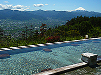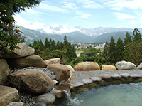 栂池高原スキー場の近くにある温泉。少し黄色がかった湯で、露天風呂からは、白馬三山が望める。