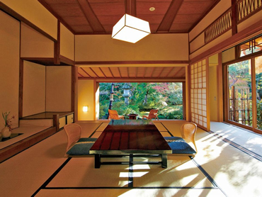 自家天然温泉の湯は赤みを帯びた塩化物泉で、体の芯から温まり、肌がすべすべになると評判。日帰り入浴も可能。