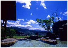 北アルプスを望む露天風呂とバイキング料理が好評の宿