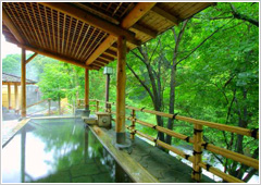 清流を眼下に望む露天風呂で、琥珀色の炭酸泉を堪能!