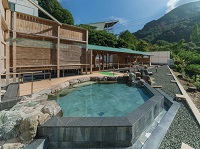 平成9年に温泉が発見され、参拝と温泉の両方を楽しめる観光地として人気を集めている。3つの源泉から毎分約400L湧き出る湯は、無色透明でさらりとした肌触りが特徴。