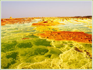 高さ約50m程度の溶岩台地の小さな山で、玄武岩物質のマグマが地中に侵入したことによって形成されたものと考えられています。雨水などが地中にしみ込む過程で地層にある塩や硫黄を含み、人工的には作り出すことの出来ない絶妙な色彩を作り出します。