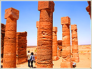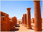 紀元前3世紀、メロエ王国時代に建設されたアモン神殿など、大きな石造りの遺跡が残っています。列柱にもヒエログリフ(神聖文字)がびっしりと彫られ、神殿内部に至る参道の両脇には羊の姿で表されるアモン神がスフィンクスのように控えています。