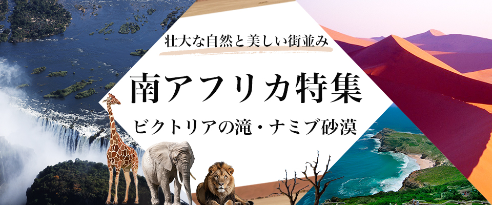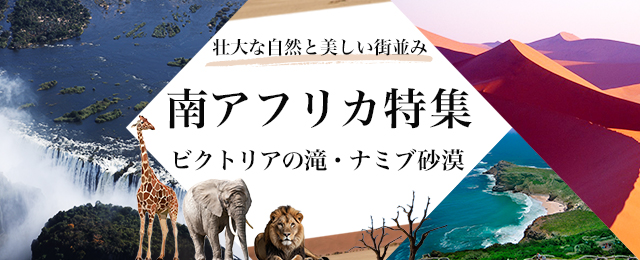 クラブツーリズムの南アフリカ旅行・ナミブ砂漠ツアー特集!広大なサバンナで行う動物サファリ、アフリカ大陸の最果てで大航海時代の象徴・喜望峰、ビクトリアの滝など南アフリカのおすすめ観光地や、ナミビアに広がる世界遺産ナミブ砂漠の絶景をご紹介。