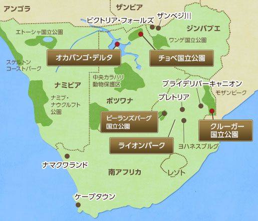 一口にサファリと言っても、エリアによって風景や、よく見られる動物も異なります。今回はどこのエリアに出かけましょうか・・・。