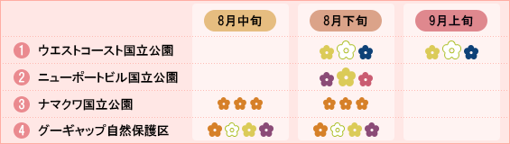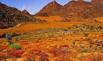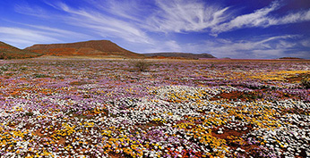 半砂漠地帯に年に8月下旬・9月上旬にかけて一度だけワイルドフラワーが大地に咲き乱れる。植物の種類は6,000種以上。