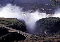 ジンバブエ・ザンビアの両国にまたがる世界3大瀑布のひとつビクトリアの滝。