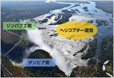 上空からは広大なビクトリアの滝の全貌をご覧いただけます。滝のスケールの大きさ、またかつて滝であった渓谷の様子など歴史の深さも確認できます。全貌を捕らえてこそ、滝観光を制覇できたといえるでしょう!