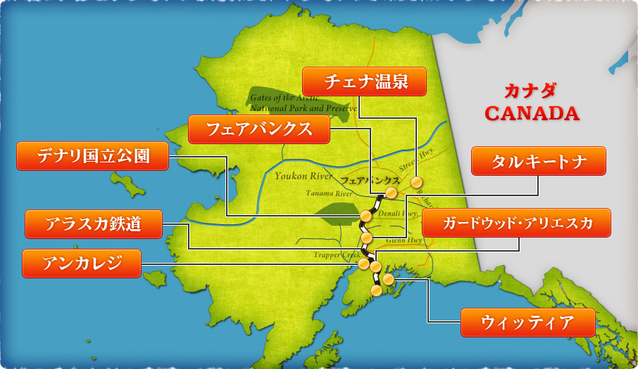 アラスカ旅行・ツアー・観光ならクラブツーリズムにおまかせ!添乗員付きのツアーだから安心で快適です。アラスカ鉄道、デナリ国立公園、アリエスカなどの観光地や、おすすめのアラスカツアーをご紹介。ツアーの検索・ご予約も簡単。