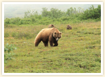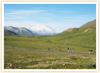 日本の九州とほぼ同面積の中に39種類の動物・167種の鳥類・約550種の植物が生息、マッキンリー山を中心に広がるこの国立公園は、まさに自然の宝庫。デナリとは先住民の言葉で、「偉大なもの」を表し、マッキンリー山を意味する。夏は爽やかなアラスカの風景を、秋は真っ赤に染まるツンドラ大地の紅葉を楽しむことができる。