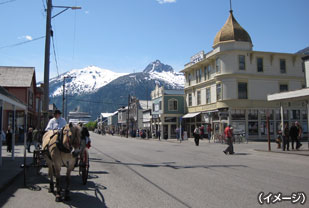 山に囲まれた街・スキャグウェイは、ゴールドラッシュで栄えた街。アラスカの中で、最も当時の雰囲気を残す街と言われており、ノスタルジックな町並みを楽しむ事ができます。また、ゴールドラッシュの最盛期に建設が始まった「ホワイトパス&ユーコン鉄道」は、スキャグウェイ観光の目玉です。