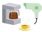 ドライヤー・コーヒーメーカー・タオル・シャンプーはあります。