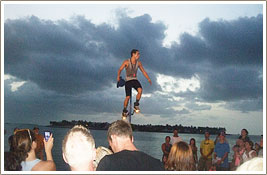 絶景の夕日観賞スポット。夕日を待つ人々と大道芸人で常に賑い、ひとつのお祭りとして「サンセットセレブレーション」と呼ばれます。