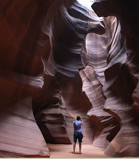 足を踏み入れると、中はまさに幻想的な雰囲気が漂っており、異世界に来たような感覚に襲われます。どの角度から撮影しても絵になるアンテロープキャニオン。思わずカメラのシャッターを夢中で切ってしまいます。(※フラッシュ撮影は禁止、太陽の光を入れずに撮影することがポイントです)