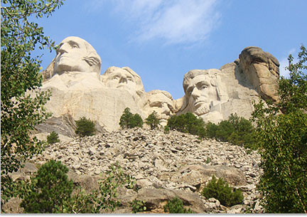 CMや映画でおなじみの岩山に掘られた4人のアメリカ大統領の巨大な顔の記念碑『マウントラシュモア』この4人の大統領は、アメリカの建国から150年で重要な人物が選ばれており、ジョージ・ワシントン、トーマス・ジェファーソン、エイブラハム・リンカーン、セオドア・ルーズベルト大統領の4人です。顔は18m以上もあり、鼻は約6メートル、瞳は約90センチという巨大な彫刻です。