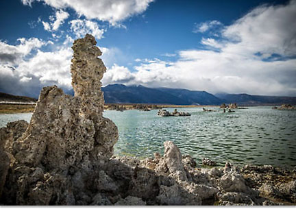 モノ湖は、アルカリ性で非常に塩分濃度の高い塩湖としても知られています。特殊なエビやハエが生息しており、ここから「モノ」(ネイティブアメリカンの言葉で“ハエ”)と名づけられました。