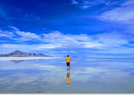 ユタ州ソルトレイクシティから西へ約200キロにあるボンネビル湖は広大な塩の平原です。年間を通じて晴天率が高いため普段は見渡す限り白い大地が広がっていますが、比較的雨が多い3月から5月には一面に水が張り、まるで鏡のようになり、空や山を映し出す幻想的な景色が見られます。