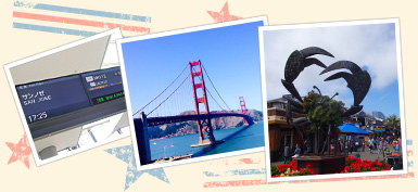 羽田空港で旅仲間と合流し、直行便にてサンフランシスコへ。到着後、現地ガイドさんと合流し、サンフランシスコの市内観光へ。霧の街サンフランシスコでも目立つシンボルとして赤く塗られたゴールデンゲートブリッジや、港町を満喫できるフィッシャーマンズワーフをめぐり、翌日の観光のためにヨセミテへ近づいた「マーセド」の街に宿泊!