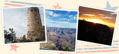 いよいよ念願のグランドキャニオンへ!深い峡谷の中でも、コロラド川の流れを見ることができるデザートビューポイントや、絶景展望台マーサーポイントなど圧巻の景色を堪能。ブライトエンジェルロッジという施設を拠点に、平坦な道と峡谷を下る道、2種類から選べるミニハイキングも♪じっくり観光したあと、夕日観賞へ。日が沈む光景はもちろん、沈み行く夕日がキャニオンを照らし、峡谷がピンクに染まる風景も幻想的で美しいです。