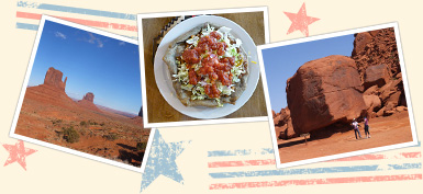 日本では考えられないような、茫洋としたどこまでも続くまーっすぐな道をバスで進み、モニュメントバレーへ。昼食は現地民族「ナバホ族」の名物料理、ナバホタコをお召し上がりいただきます。モニュメントバレーの観光は、オプションでご案内している専用車ツアーがおすすめです!巨岩を近くで見ることができます。ご宿泊はグランドサークル観光に便利な街「ページ」です。