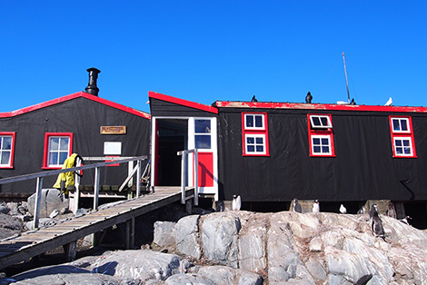 19~20世紀に捕鯨基地として知られていたウィンケ島にある自然の良港。今でも当時を物語る鯨の骨やとも綱の鎖などが残っています。現在は英国の基地となり、基地内はお土産物が購入できるショップや博物館となっています。